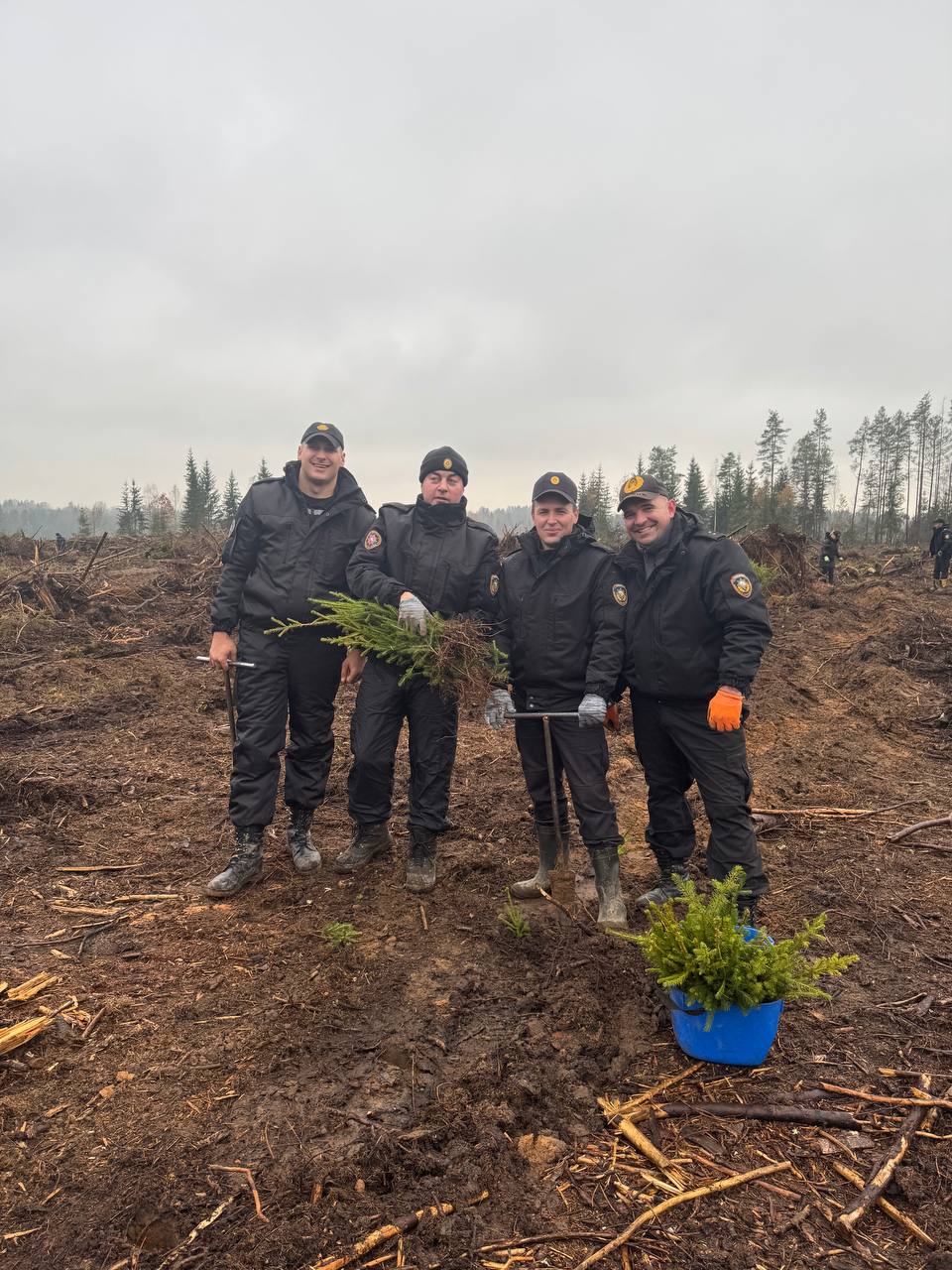 скоростью до 25 м/с, около гектара заняли новые саженцы елочек и сосен.