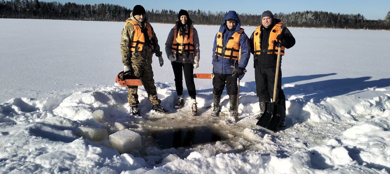 Стодолещенского сельсовета. В разных частях озера изготовлены проруби.