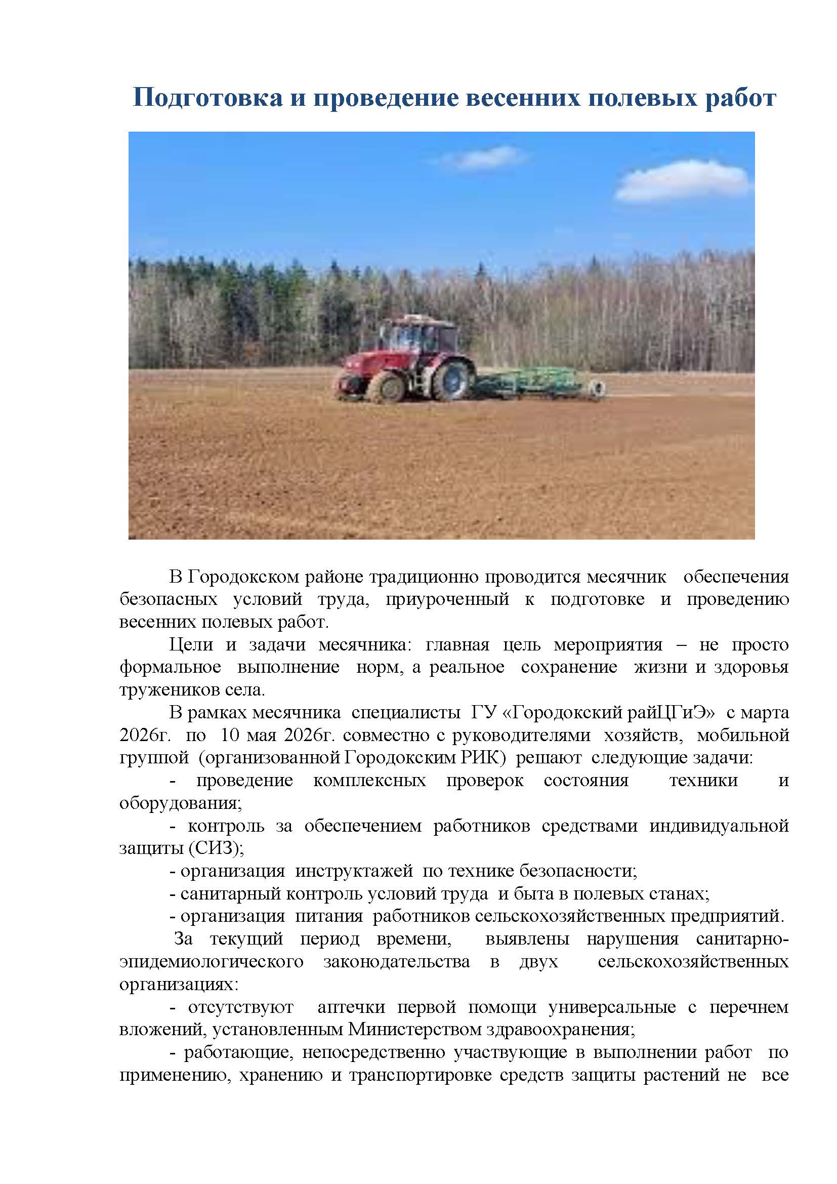 Подготовка и проведение весенних полевых работ