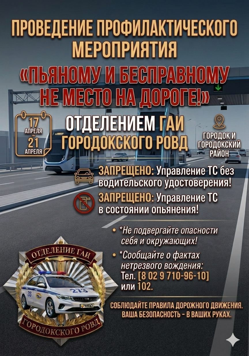 ГАИ обращается ко всем участникам движения: если вы видите на дороге нетрезвого водителя или водителя без прав — не будьте равнодушными! Сообщите об этом по телефону 102. Возможно, именно ваш звонок спасет чью-то жизнь.